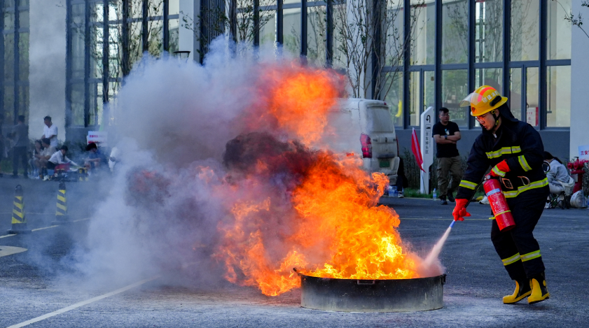 竞赛科目有湿麻袋、干粉灭火器综合灭火、扛沙袋越障碍和水枪打靶等项目。选手在比赛中奋勇争先,现场气氛非常激烈。在综合灭火区,选手们如离弦之箭,驰骋赛场。先是用麻袋灭掉油桶火焰,接着手持灭火器并拔掉插销、压下把手,快速准确灭掉了油盆火焰,动作行云流水,一气呵成。在水枪打靶区,参赛队员扛起沙袋,跨越障碍,连接好水带和水枪头、出水击中靶心,相互之间配合默契,发挥出色。同时,竞赛现场还设置了消防知识有奖竞答、安全疏散逃生体验、全国“119消防月”主题宣传等活动。