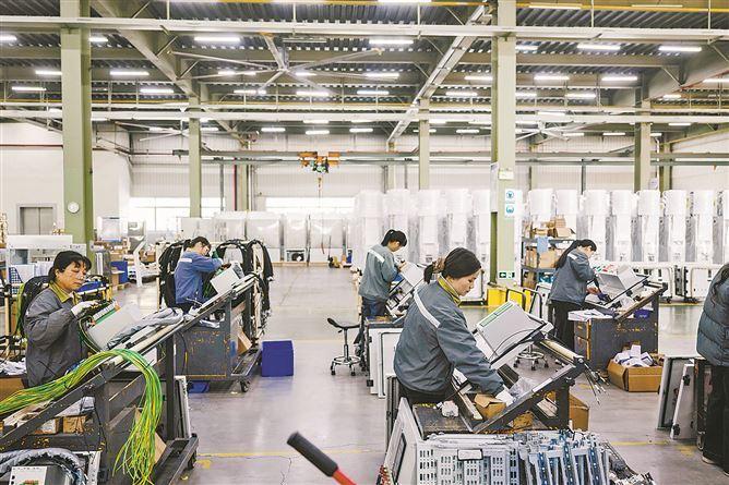 位于火炬(翔安)产业区的明翰电气内,工人们全力以赴赶制订单。2025年,明翰电气订单量同比增长30%,存量订单已排产至今年8月。(本报记者 林铭鸿 摄)
