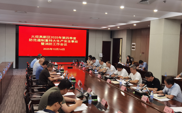 10月16日下午,火炬高新区召开2025年第三季度安全生产、消防工作总结暨四季度工作部署会议。管委会领导班子成员、机关各处室、各园区管理单位主要负责人以及园区各安监站站长约30人参加会议。